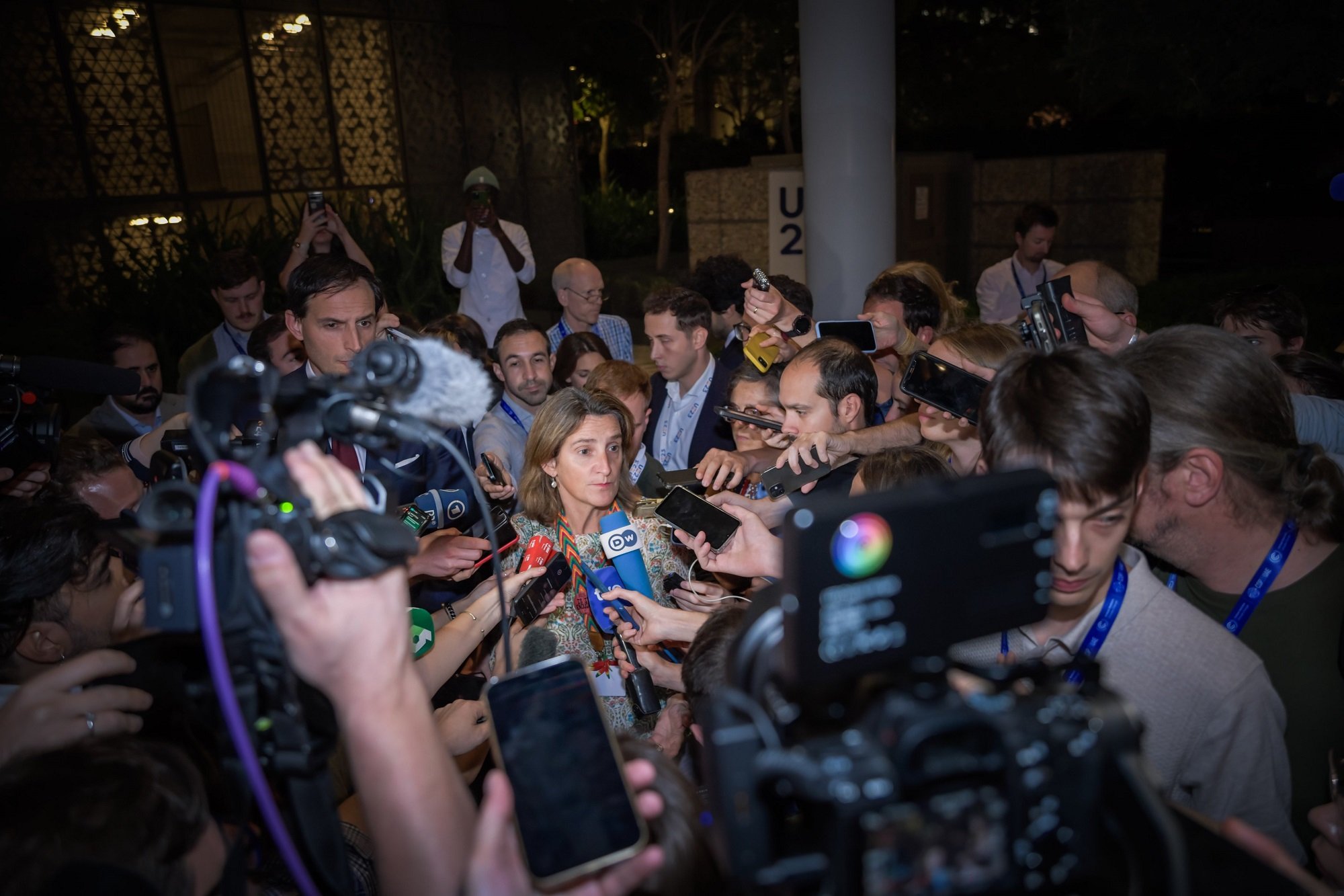 La vicepresidenta ecológica ve “insuficiente” y “elementos inaceptables” en la Cumbre del Clima que se está celebrando en Dubái, entre ellos, que sea tan complicado llegar a un acuerdo para poner fin a los combustibles fósiles. De hecho, considera que será “muy difícil” que haya acuerdo antes de las 11 horas de mañana, martes 12, y está bastante seria y decepcionada, porque pensaba que esta Cumbre iba a ser “un punto sin retorno”.
