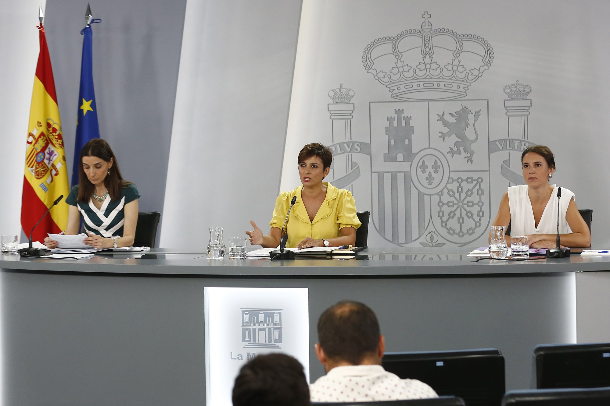Tras el Consejo de ministros, comparecen la ministra portavoz, Isabel Rodríguez, la pedagoga ministra de Justicia, Pilar Llop y la estrella rutilante del Ejecutivo; Irene Montero.