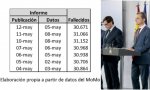 Así los informes Momo, que cada día se publican más tarde, cuando se publican, nos muestran cosas tan increíbles como recoger el número de fallecidos a una misma fecha y que no cuadren: esto ocurre con los datos del 5 de mayo y del 8 de mayo, que se publican los días 6 y 12 de mayo, para el primer caso, y los días 10 y 11 de mayo para el segundo. O que cuando se dan dos cifras de fallecidos para el mismo día, como en los casos anteriores, la segunda siempre sea menor que la primera. O que de repente un informe (12 de mayo) nos señale datos de una semana antes, cuando el del día anterior lo hacía de datos mucho más recientes.