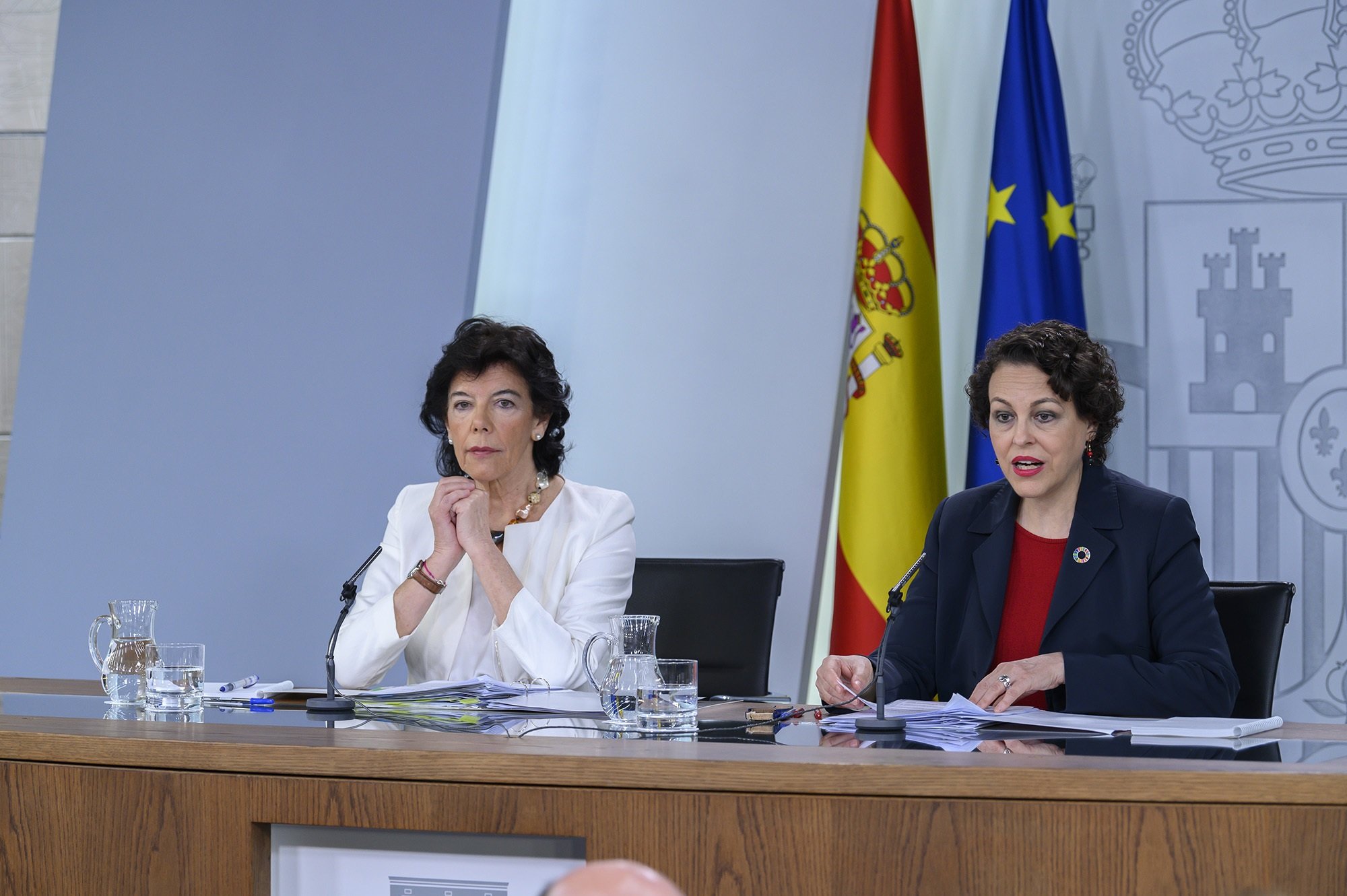 Consejo de Ministros del viernes, nueve de agosto. Entra en la sala la portavoz del Gobierno, Isabel Celaá, que no tarda en hacerse con la palabra y condenar los crímenes machistas de la semana: "No desfallecemos en nuestra tarea de luchar contra esta lacra". Más tarde comenta que le acompaña en la rueda de prensa la ministra de Trabajo, que "no necesita presentación", dice Celaá posando su mano sobre el brazo de su compañera, "nuestra querida Magdalena Valerio, tan necesaria".