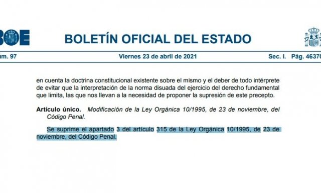 Sí, se que resulta difícil de creer pero aquí tienen las pruebas. El Gobierno Sánchez en un alarde de desfachatez, y aprovechando la mayoría absoluta de la que dispone gracias a la izquierda radical, ha derogado el artículo 315, apartado 3 del Código Penal.