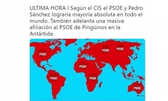 El cachondeo no termina ahí. La revolución Tezanos ha sobrepasado fronteras. Otra Última hora: el PSOE tendría mayoría absoluta... el mundo entero.