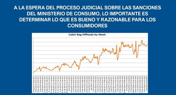 Además, Gándara ha vuelto a defender el cobro del equipaje de mano por el que fueron sancionadas cinco aerolíneas (Ryanair, Vueling, easyJet, Norwegian y Volotea) por el Ministerio de Derechos Sociales, Consumo y Agenda 2030 el pasado noviembre. El presidente de ALA y directivo de easyJet ha subrayado que en muchos de los aviones actuales más utilizados hay capacidad para 180 asientos, pero sólo para 90 maletas de cabina (también llamadas trolleys). Un tema que está en los tribunales y en el que Ryanair ha sido la low cost más agresiva. Además, Gándara ha añadido que se han incrementado las descargas de las bodegas de equipaje de mano por semana.