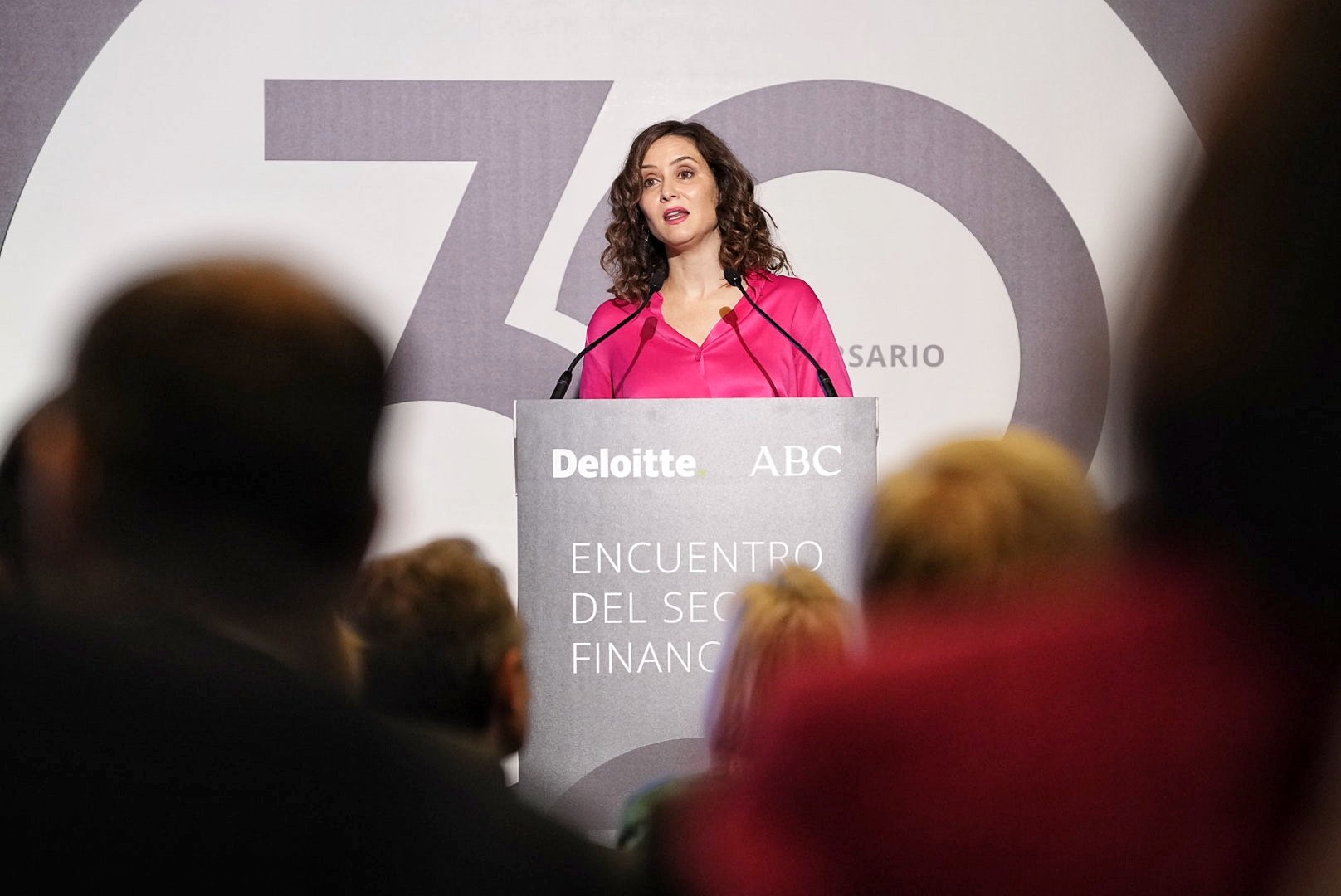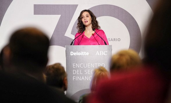 Como ya ocurriera hace un año, Isabel Díaz Ayuso fue recibida con gran expectación este martes, en el XXX Encuentro del sector financiero, organizado por Deloitte y ABC. Además de los mensajes políticos, que esperaba todo el auditorio, la presidenta de la Comunidad de Madrid advirtió sobre las consecuencias de reducir la jornada laboral a 37,5 horas semanales, como pretenden PSOE y Sumar.