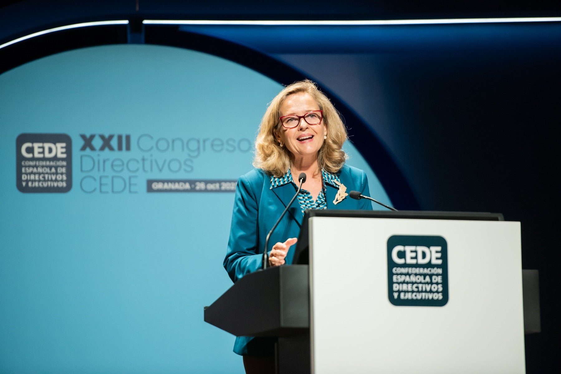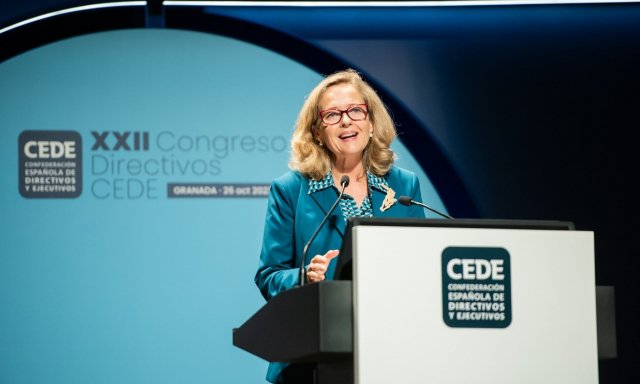 La vicepresidenta del Gobierno, Nadia Calviño, participó en el Congreso de la confederación de directivos españoles (CEDE) celebrado en Granada.
