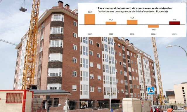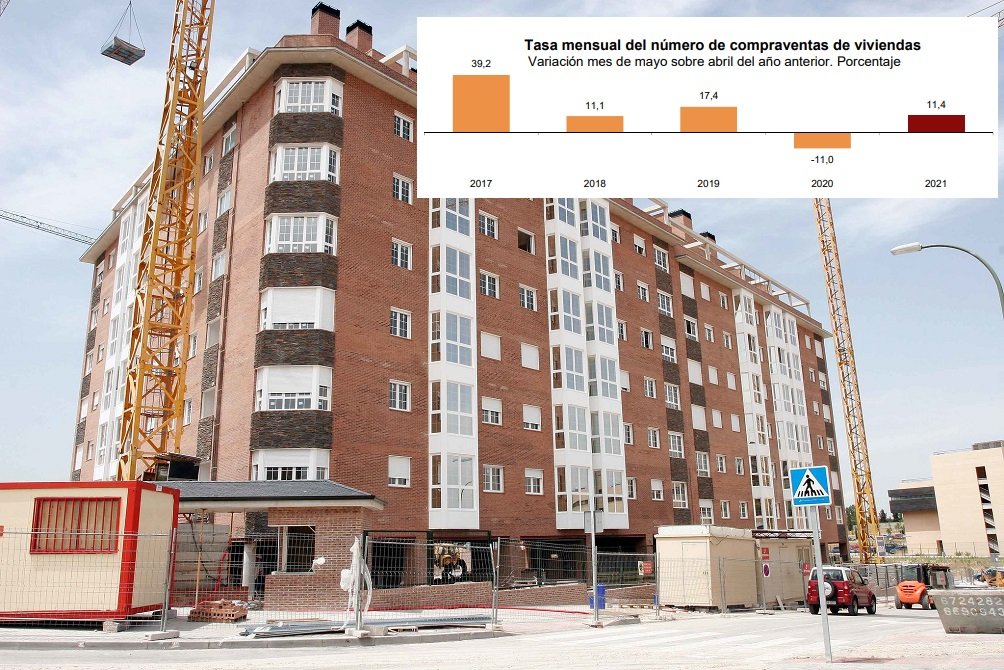 La compraventa de viviendas se ha duplicado (+107,6%) en mayo en tasa anual, hasta 47.033 operaciones, según ha publicado este martes el Instituto Nacional de Estadística (INE). Un buen signo de recuperación, aunque aún falta para que esta sea completa: el indicador ha subido un 11,4% en tasa mensual, pero no supera el dato de mayo de 2019 (+17,4%) y aún está lejos del de mayo de 2017 (+39,2%).