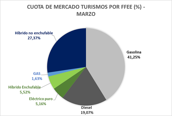 Las ventas de electrificados, híbridos y de gas bajan un 8,4%, a 24.738, en marzo, aunque suben un 21,5%, a 70.072, en el primer trimestre. Y dentro de estos, los híbridos no enchufables siguen siendo los preferidos