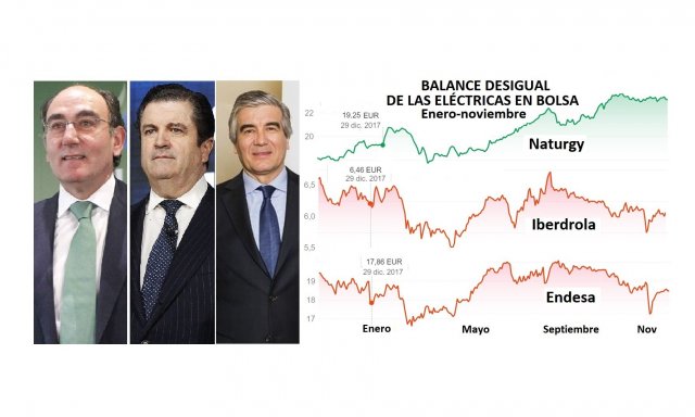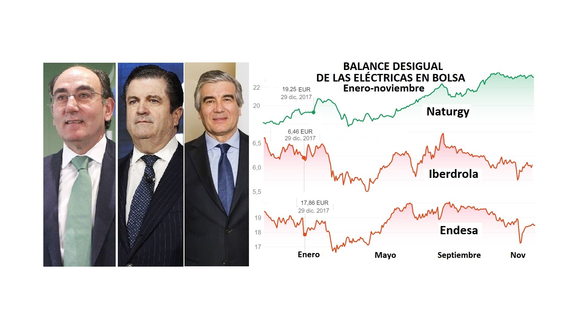 El termómetro bursátil trasmite la misma inquietud, con dos fases en el año, antes de la entrada de Sánchez en Moncloa, en fase alcista, y después, que corrige el periodo anterior. La excepción es Naturgy, a la que le ha sentado bien la presidencia de Francisco Reynés: ocupado ahora en el recorte de costes (el ajuste laboral afectará a 2.000 trabajadores en 2019). La empresa arrancó el año a 19,92 euros la acción y ahora cotiza a 21,84. Iberdrola, la única que ha presentado resultados de momento (gana un 13% menos hasta septiembre)- cotiza ligeramente por debajo de finales de diciembre (en 6,29 frente a 6,46) y Endesa sigue prácticamente en el nivel marcado al que cerró el año, 0,5 euros por encima de los 18.
