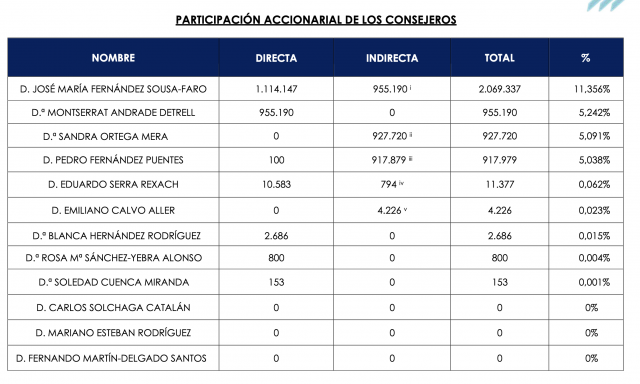 Con un 5% aparece Sandra Ortega, hija de Amancio Ortega y una de las principales fortunas de España. Y esto merece especial atención por cuanto las relaciones de los hermanos Sousa, con el actual presidente del Partido Popular, Núñez Feijóo, ya desde que fuera presidente de la Xunta de Galicia, nunca ha sido de profunda amistad.