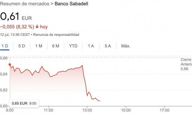 La reacción del mercado ha sido inmediata y las entidades se han hundido literalmente en bolsa. Caixabank, Sabadell y Bankinter más de un 8%, BBVA más de un 5% y Santander más de un 4%. Y cayendo. Está claro que los inversores han huido a la voz de sálvese quien pueda.