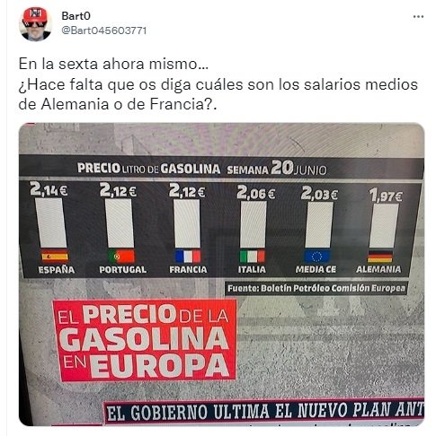 Y por cierto, aunque en esta ocasión no lo señala Amor, también estaría muy bien que el Ejecutivo Sánchez optara por reducir los impuestos que soportan los carburantes (el IVA y el Impuesto sobre Hidrocarburos), que pese a los elevados precios y récords de gasolina y diésel -que ya se han comido la bonificación de 20 céntimos- aún no ha tocado, aprovechando para llenar aún más las arcas públicas. Más vale que Sánchez tomara nota del presidente de EEUU, Joe Biden (‘Yayoyou’), al que verá en unos días, porque ha planteado suspender el impuesto sobre la gasolina durante tres meses, tras el récord de precio,