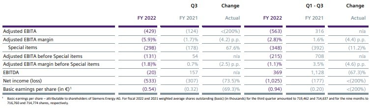 Sólo en el tercer trimestre fiscal (abril a junio), Siemens Energy ha arrojado unas pérdidas de 390 millones y ha tenido un Ebita ajustado de -429 millones, empeorando con creces el obtenido hace un año (-124 millones) y un margen Ebita ajustado de -5,9%, lastrados por unas partidas especiales de 298 millones principalmente por el impacto de la reestructuración del negocio en Rusia. Los ingresos han bajado un 4,9% en términos comparables, a 7.279 millones, pese a que la entrada de pedidos se ha disparado un 60%, a 9.800 millones, y la cartera de pedidas ha alcanzado el récord de 93.400 millones. Por su parte, el flujo de caja libre antes de impuestos ha pasado de ser positivo en 328 millones a negativo de 25 millones.