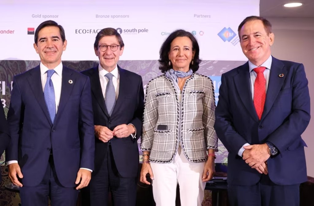 El caso es que los presidentes de Caixabank, Santander, BBVA y Mapfre se juntaron para hablar -con las agendas tan apretadas que tienen- sobre finanzas sostenibles o, si lo prefieren, sobre el gran negocio que es para ellos la transición energética. Efectivamente, la jornada la inauguró Teresa Ribera, que tuvo que salir corriendo para participar en el Consejo de Ministros.