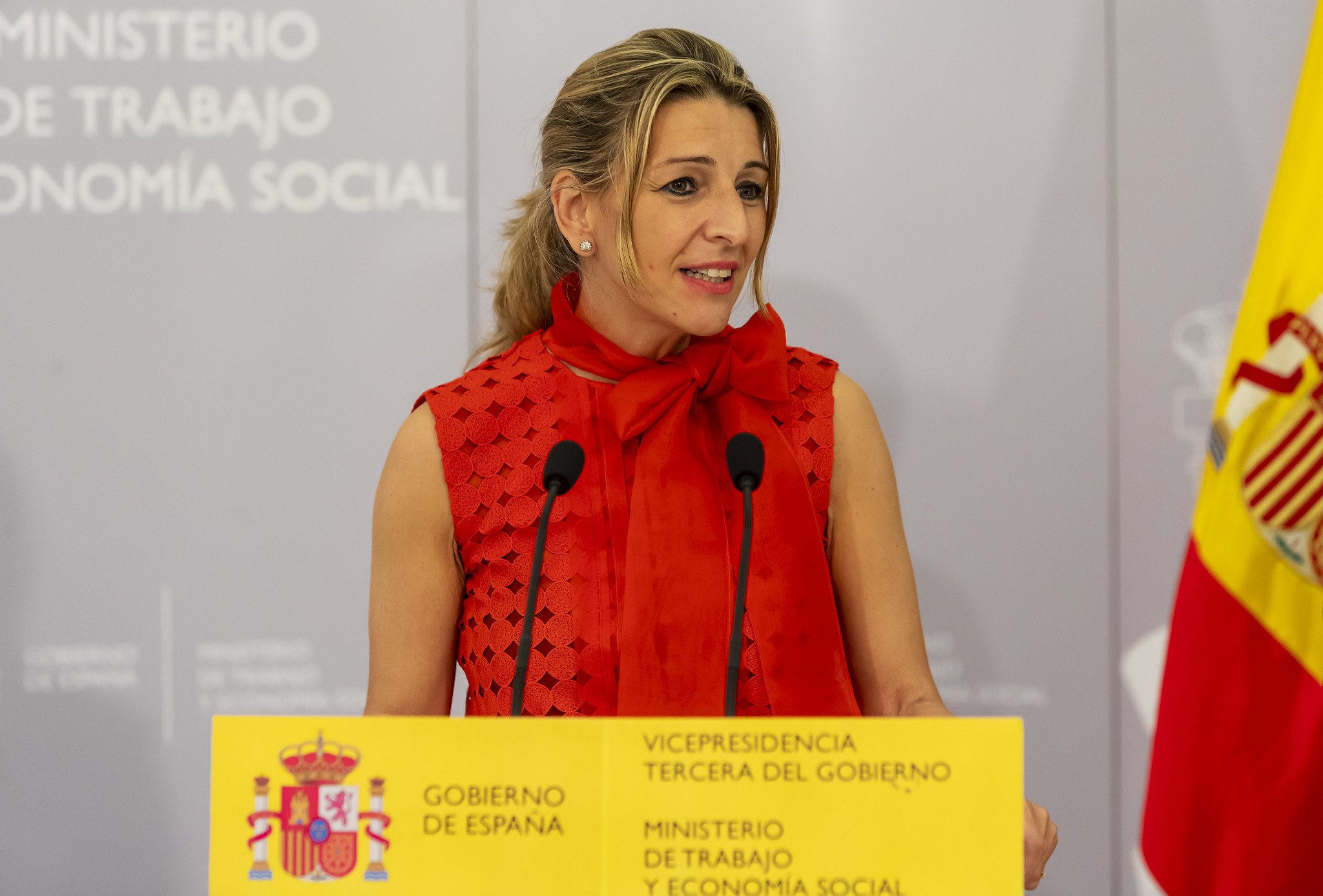 "La reforma laboral es un ejemplo para el conjunto del mundo porque recuperan derechos", ha proclamado la vicepresidenta. "Este es el Gobierno de los trabajadores y trabajadoras. Nos queda mucho por hacer pero vamos a seguir mejorando la vida de la gente”, ha asegurado sin despeinarse.
