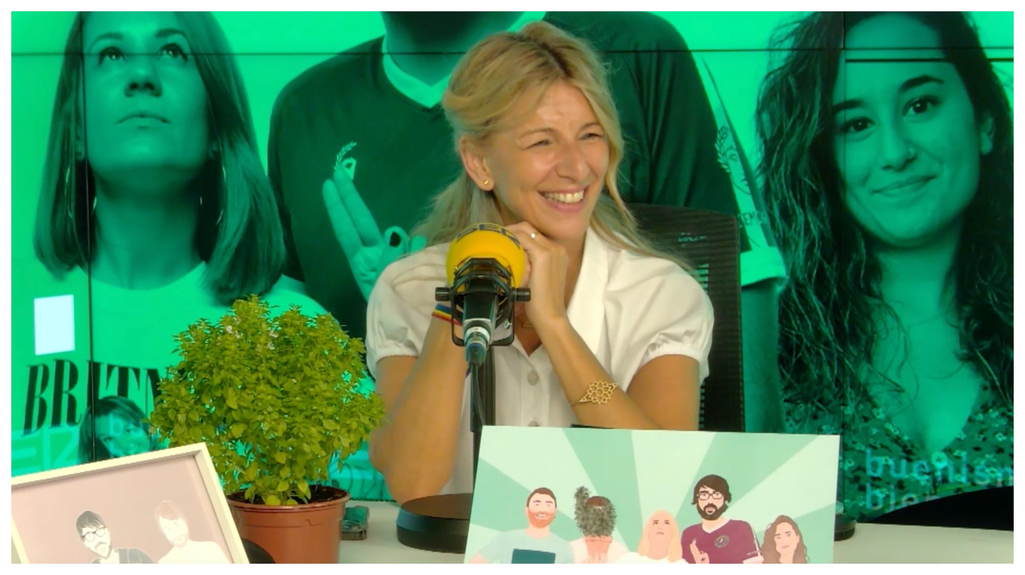 No sólo el Presidente Sánchez está siendo entrevistado estos días en diferentes medios. Su número 4, Yolanda Díaz, también reclama su minuto o minutos de gloria en espacios como 'Buenismo Bien' de la Ser.