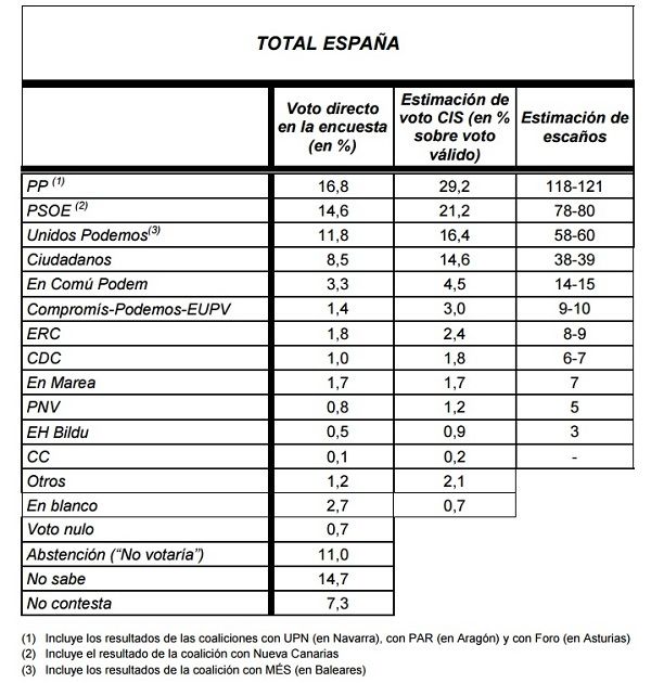 Centro de Investigaciones Sociológicas (CIS) ha publicado hoy jueves su esperada encuesta preelectoral cuando apenas quedan unas horas para el inicio esta próxima medianoche de la campaña.Pues bien: el