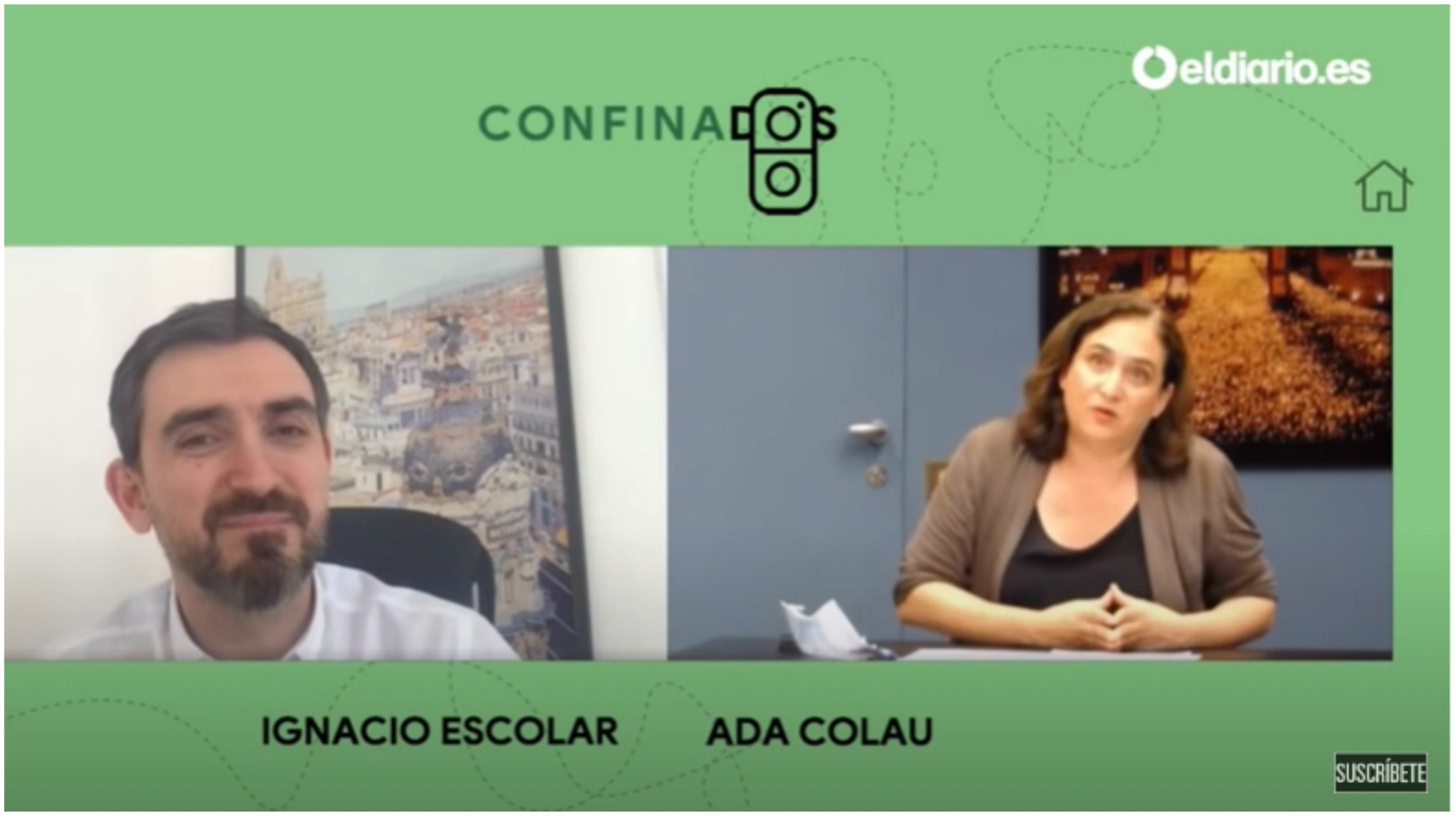 La alcaldesa de Barcelona, Ada Colau, charla por videoconferencia -de casa a casa- con Ignacio Escolar en la sección #confitados de elDiario.es.