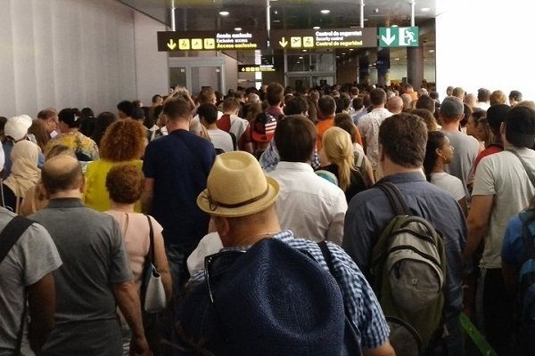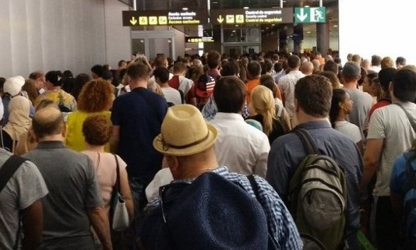 epicentro turísitico. Y se repite también un hecho: que un puñado de trabajadores pone en un brete al país, del mismo modo que ha ocurrido otras veces con otros colectivos: controladores, estibadores, pilotos y empleados de limpieza.En el caso que no ocupa, con daño colateral flagrante: el perjuicio para cientos de pasajeros, muchos de los cuales pierden su vuelo atrapados en interminables filas.Las colas en los controles de seguridad (