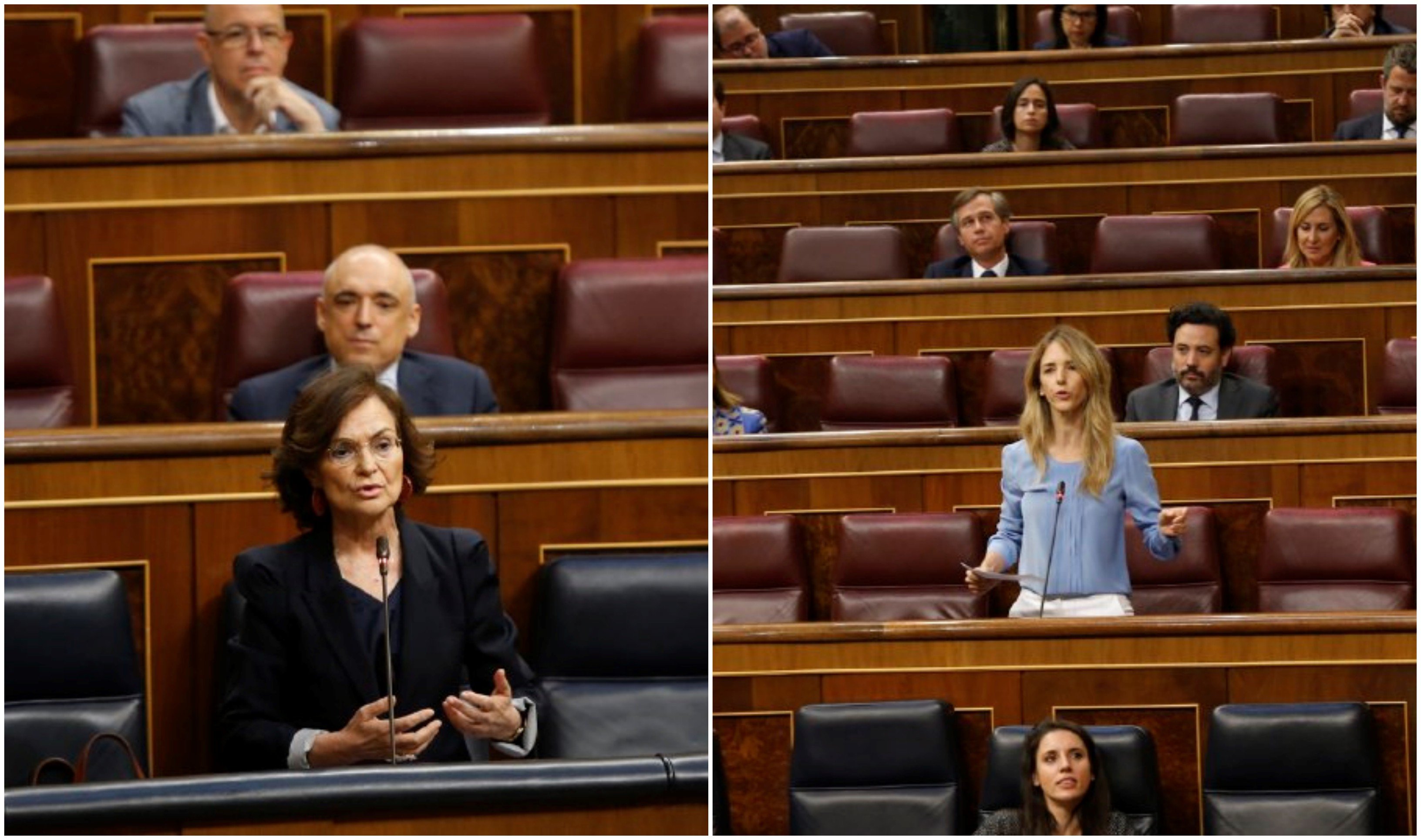 La vicepresidenta primera del Gobierno, Carmen Calvo le responde que el ministro del Interior, Fernando Grande Marlaska, está sentado ahí "porque el presidente es quien nombra y cesa" y acusa a la portavoz del PP de estar contando "su verdad", pero que en el Estado de Derecho la "única incontestable verdad es el cumplimiento de la ley".