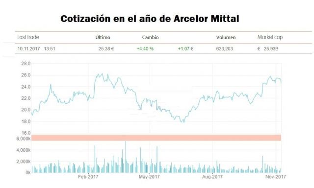 beneficio neto del primer productor de acero aumenta un 156% desde enero, hasta 3.033 millones de euros, tras crecer un 77% en el último trimestre, hasta 1.205 millones, muy por encima de las expectativas (en 730 millones). Con los