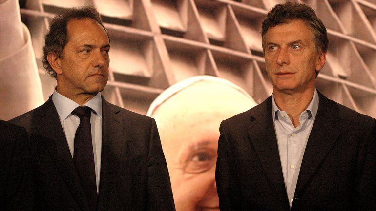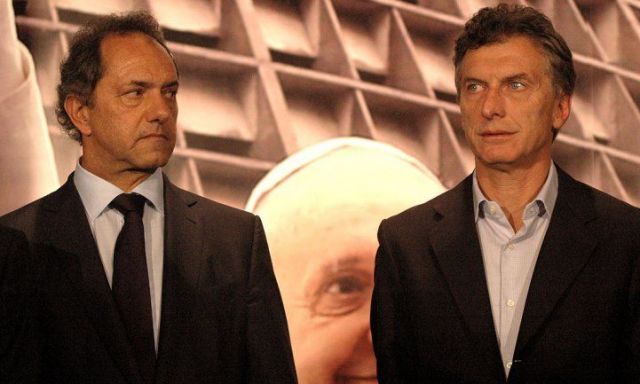 ambos en la imagen), que va primero en las encuestas.De hecho, las últimas divulgadas el fin de semana colocaron al opositor Macri, de la alianza Cambiemos, a la cabeza de la carrera ganando terreno sobre Scioli, que obtuvo una victoria en la primera vuelta de finales de octubre pero con una corta ventaja.Y en ese contexto ha tenido lugar este domingo un