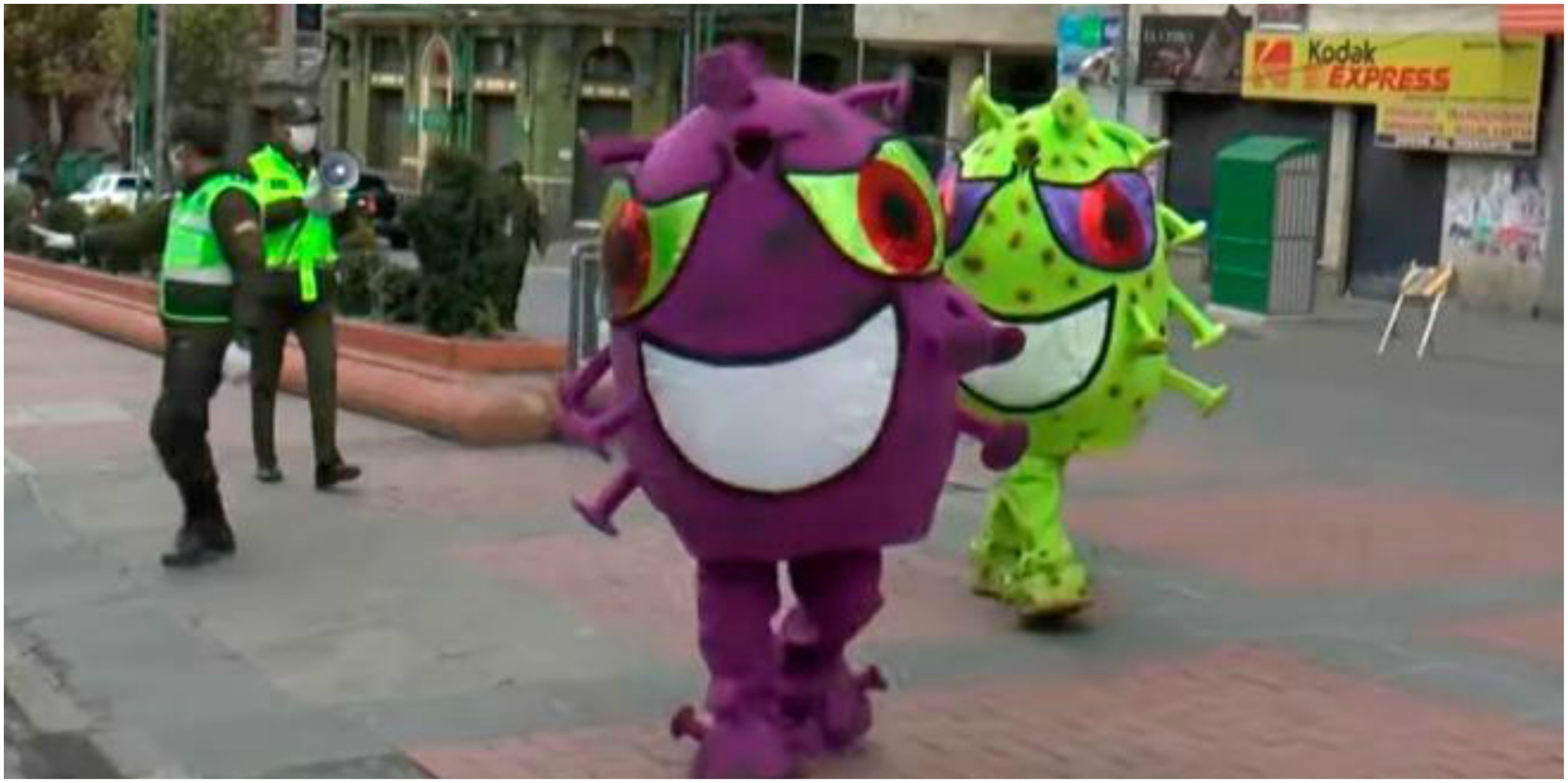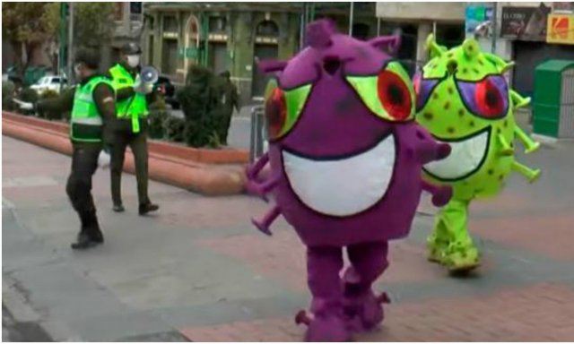 Ante el brote de coronavirus, el Gobierno de Bolivia presidido por la internia Jeanine Áñez declaró el estado de emergencia sanitaria el pasado jueves 26 de marzo hasta el 15 de abril y limitó la circulación de personas. Con la misma intención que otros países, las autoridades instaron a su población a quedarse en sus casas para evitar la propagación de la pandemia. Para concientizar, la policía tuvo una particular idea y utilizó a dos de sus agentes para advertir a los ciudadanos en las calles de La Paz, recoge Bolavip.