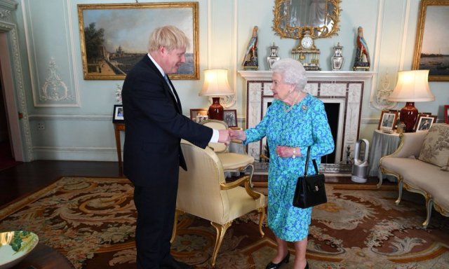 Boris Johnson ha asumido el cargo de primer ministro tras reunirse con la reina y aceptar su encargo de formar una nueva Administración. Así, le coge el testigo a Theresa May con la firme intención de ejecutar la salida de Gran Bretaña de la Unión Europea (UE) el 31 de octubre de este año, "sin peros ni condiciones".