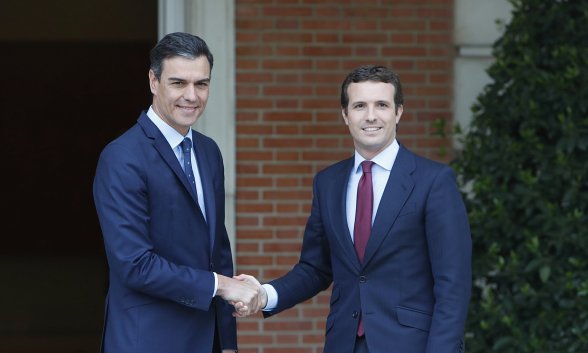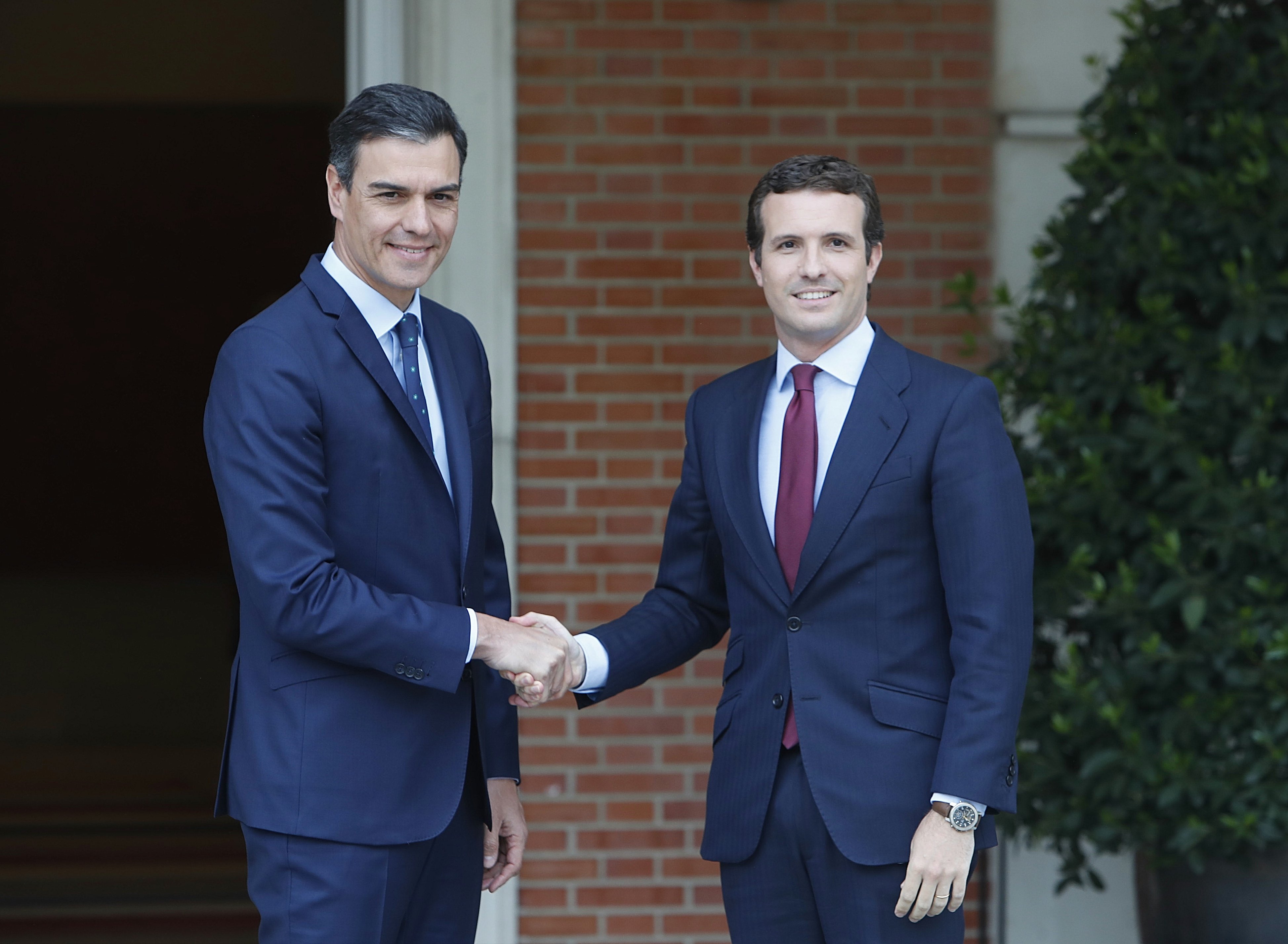 Pedro Sánchez recibía a Pablo Casado en Moncloa durante la mañana del lunes, en una reunión previa a la ronda de consultas. En el encuentro, que ha durado poco más de hora y media, no se han hablado de pactos “por respeto al rey”, según el líder del PP. No obstante, ha pedido al presidente que no llegue a acuerdos con "aquellos partidos que han demostrado deslealtad" al país.