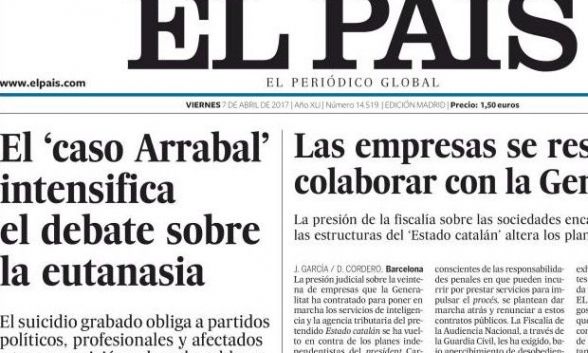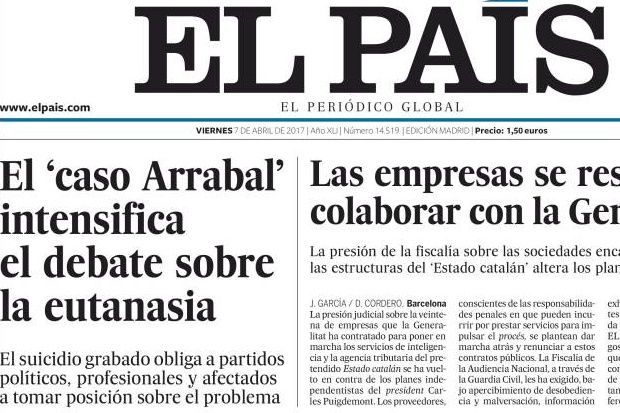 El diario El País ha mediatizado el caso del suicidio televisado de José Antonio Arrabal. Y lo ha mediatizado con la portada de su edición del viernes 7 de abril. Ojo al dato: "El 'caso Arrabal' intensifica el debate sobre la eutanasia". Y por si no había quedado claro: "El suicidio grabado obliga a partidos políticos, profesionales y afectados a tomar posición sobre el problema". Ya saben que cuando la progresía dice que hay que abrir un debate es que ya ha sacado la conclusión del debate: legalizar la eutanasia. Con el aborto ocurrió lo mismo. El País asegura que sólo Podemos defiende la eutanasia. No es cierta la actitud tibia, tanto del PP como de PSOE y Ciudadanos. Habla de sedaciones, que es una forma de introducir el suicidio asistido. Y ahí es donde entra la vicepresidenta del Gobierno, Soraya Sáenz de Santamaría, el elemento más progresista del Ejecutivo y la defensora de Janli Cebrián ante los bancos acreedores y accionistas de PRISA. A Soraya, que no es precisamente una provida, le viene de perlas el debate sobre la eutanasia para colocar contra las cuerdas a los "carcas" de su partido, como dicen en su entorno. Ya saben, católicos y otros antiguos que estuvieran dispuestos, al menos, a torcer el gesto ante este nuevo atentado contra la vida. Al tiempo, Janli Cebrián se muestra dispuesto a ayudar a su defensora, que es la que está deteniendo la operación de Cesár Alierta, Telefónica, y Santander, HSBC y Caixabank, que quieren que Cebrián se marche a casa porque a están hartos de perder dinero en PRISA. Pero a Soraya no le encanta su dimisión. Eulogio López eulogio@hispanidad.com
