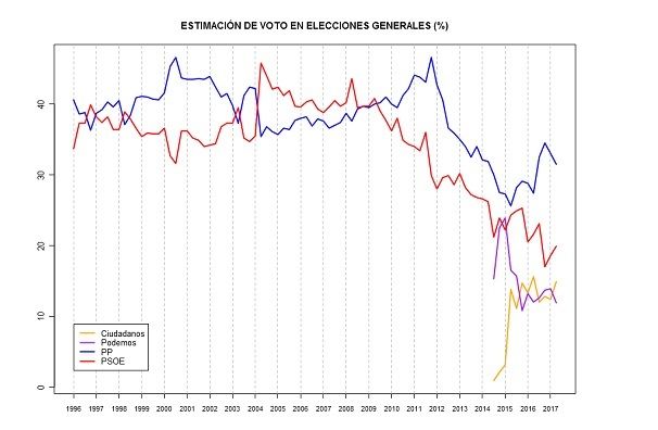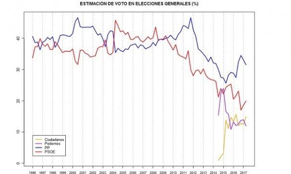 después de apoyar la investidura de Rajoy aunque continuaba más de tres puntos por detrás de Unidos Podemos, que perdía fuelle hasta el 21,7% de los sufragios.