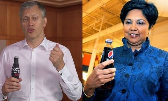 Coca-Cola ha perdido más burbujas que su gran rival, PepsiCo, durante el último año. Y es que sus ingresos se han desplomado un 20% en el cuarto trimestre, hasta los 6.064 millones de euros, aunque ha superado las expectativas de los analistas. La multinacional de Atlanta ha logrado esta facturación, gracias a las mayores ventas de té, café Georgia y agua con vitaminas Glaceau. Pero ¿qué pasa con la cola, su producto estrella? Sigue siendo el que representa la mayor parte de los ingresos, pero la guerra al azúcar le está afectando. Y encima, Coca-Cola ha tenido unas pérdidas de 2.222 millones debido a las elevadas provisiones (3.711 millones) que ha hecho hacer para repatriar capitales y acogerse a la reforma fiscal de Donald Trump. Ojo, la reforma Trump les beneficia; por ahora repatrian lo no repatriado durante años. Los primeros resultados anuales de James Quincey (en la imagen junto a Indra Nooyi, presidenta de PepsiCo) como CEO de la 'marca de la felicidad' no han sido buenos: 1.007 millones de beneficio, lo que supone un 81% menos que en 2016 por los ajustes fiscales, y ha ingresado 28.587 millones (-15%). O sea, que Quincey sigue sin recuperar la chispa perdida, al igual que sucedió en el primer semestre y permitiendo que continúe el maltrato a España. Mientras, Pepsico ha tenido unas pérdidas de 573 millones en el último trimestre por un cargo debido a la reforma fiscal y costes de reestructuración, bastante lejos de los 1.131 millones que ganó en el mismo periodo de 2016. Eso sí, ha logrado mantener las ventas, que han ascendido a 15.766 millones. En el año, la rival de Coca-Cola que tiene como presidenta y Ceo a Indra Nooyi ha presentado un beneficio de 3.900 millones (-23%) y unos ingresos de 51.279 millones ( +1%). Se salva por ser más que bebidas: fabrica refrescos y aperitivos. Cristina Martín cristina@hispanidad.com