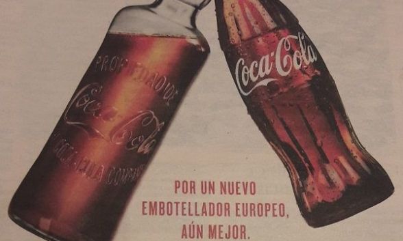 - La 'megaembotelladora' europea se estrena en la bolsa de Madrid, con una subida del 2%, mientras presume de su amor a España con anuncios en prensa.