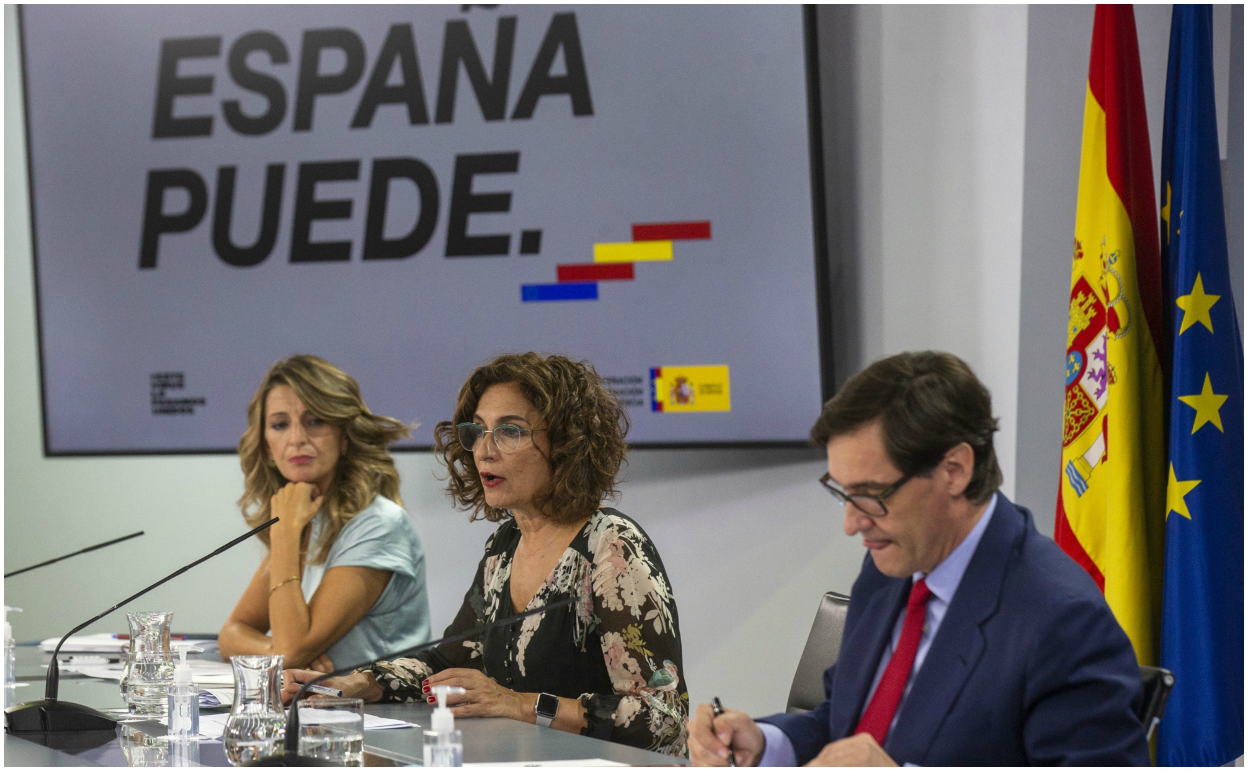 Consejo de Ministros del martes 22. Marisú Montero sale a escena acompañada de la titular de Trabajo, la iu-podemita Yolanda Díaz, y del ‘hooligan’ comedido, el titular de Sanidad don Salvador Illa. La alegre Marisú consigue esta vez dar la sensación de seguridad.