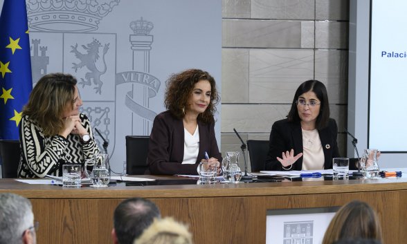 Consejo de Ministros, martes 21. Salen a escena María Jesús Montero, capaz de lidiar con una legión de periodistas, acompañada de la vicepresidenta para la cosa del Cambio Climático, Teresa Ribera y la de novata ministra de la cosa territorial, la canaria Carolina Darias. Y no parece que a la del estreno le gustara mucho la cosa porque echó un par de bostezos en una sesión donde el peso lo llevó, como no, María Jesús.