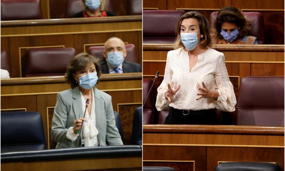 En su respuesta, la vicepresidenta Calvo comenzaba su intervención explicando: "El presidente no está aquí porque está en Bruselas defendiendo los intereses de nuestro país ante el intento desleal que hicieron ustedes para que no pudiéramos alcanzar los fondos de los que vamos a disponer”. "Rajoy se ausentó seis veces en dos años y medio, Sánchez en el mismo tiempo, una. No actúen de hooligans con las instituciones”. "Somos el Gobierno que ha hecho ERTEs para que los trabajadores no vayan al paro". "Somos el Gobierno de los ERTE, del SMI, no el de la reforma laboral que dejó tirados a los trabajadores”. “Necesitamos una política fiscal justa para sostener el estado de bienestar que ustedes destrozan en cuanto tocan una institución y la gobiernan”. La vicepresidenta responde que el Gobierno se ha gastado 35.000 millones en deuda para sostener los ERTE de 3,5 millones de trabajadores. "Gasten impuestos pero suban gasto, cuéntenlo a los ciudadanos seriamente. Es ridículo y contradictorio" bajar impuestos y aumentar gasto. "Necesitamos una fiscalidad justa para defender el estado del bienestar que ustedes destrozan”.