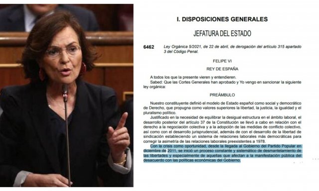En definitiva, lo que se pretende es devolver a los piquetes de huelga la posibilidad de violentar a quien quiere seguir trabajando, lo que supone, según el BOE, dependiente de Carmen Calvo asfixiar “la capacidad de reacción, protesta o resistencia contra las políticas del Gobierno”.