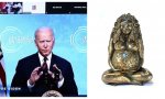 No se postró ante la nueva diosa, la Diosa Tierra, Madre Gaia, porque su provecta edad le impide doblar el lomo con la elegancia debida pero como buen católico progre, Biden se nos ha vuelto panteísta, y eleva sus preces al Planeta tierra.