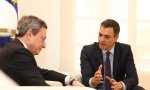 El presidente del BCE, Mario Draghi, se ha reunido este lunes con Pedro Sánchez y la ministra de Economía, Nadia Calviño, y les ha recordado la necesidad de recortar la deuda pública antes de que sea demasiado tarde.