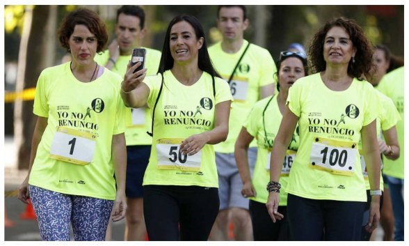 María Jesús Montero, ministra de Hacienda y portavoz del Gobierno -quien repite experiencia- este año correrá el domingo 27 de junio por su autonomía como mujer: "Ser puede ser buena madre, buena hija, buena profesional, buena amiga, buena pareja sin renunciar a nosotras mismas", asegura en el vídeo de presentación de la carrera 'Yo no renuncio' en favor de un gran pacto de Estado por la conciliación, organizada por el Club de las Malasmadres para reclamar medidas de igualdad real.