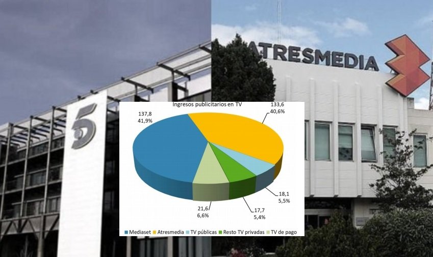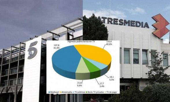 En lo que respecta a los ingresos publicitarios, los dos grandes grupos mediáticos acapararon 271,4 millones de euros de un total que ascendió a 328,8 millones. De esos 271,4 millones, 137,8 millones (41,9% del total) correspondieron al grupo de Telecinco-Cuatro y 133,6 millones (40,6% del total) al de Antena 3-La Sexta.