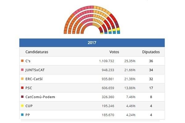 Ciudadanos, un partido no independentista sino constitucionalista. Una victoria que servirá de poco: no alcanza la mayoría absoluta para gobernar y tampoco ha intentado llegar a acuerdos para ello. Además, Rajoy añade las sonadas