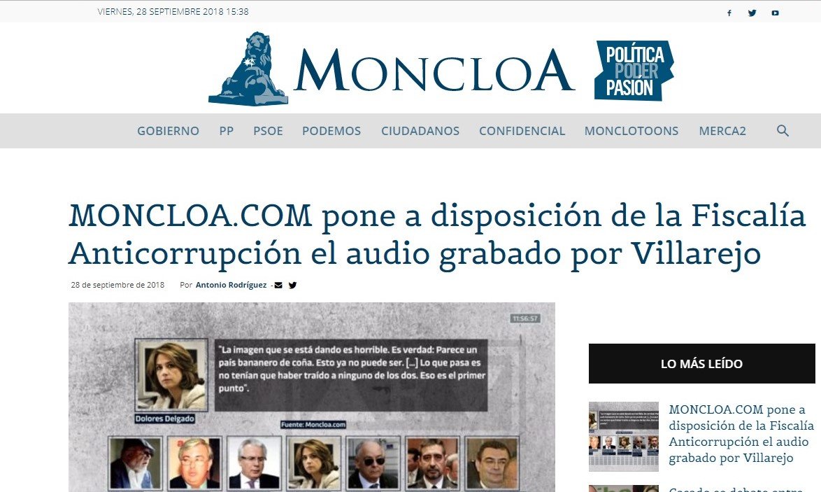 Dos policías, armados con una orden judicial han aparecido a última hora de la mañana en la redacción de Moncloa.com, el medio que ha publicado las grabaciones de la ministra de Justicia, Dolores Delgado, durante un almuerzo en 2009. Son las mismas grabaciones que provocaron la enésima crisis política del Gobierno Sánchez, con toda la oposición exigiendo la dimisión de Dolores Delgado.