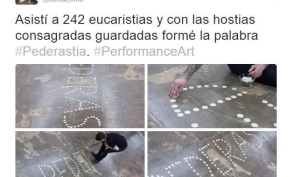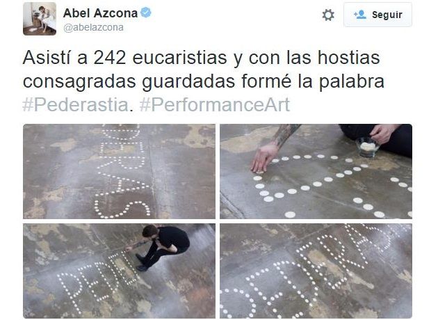 - Azcona presume en Twitter de su obra: "asistí a 242 eucaristias y con las hostias consagradas guardadas formé la palabra pederastia".