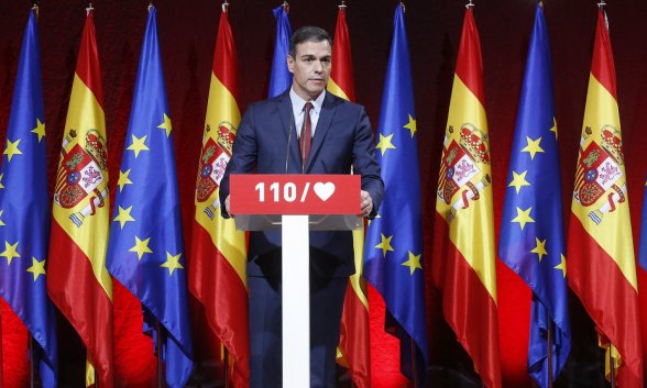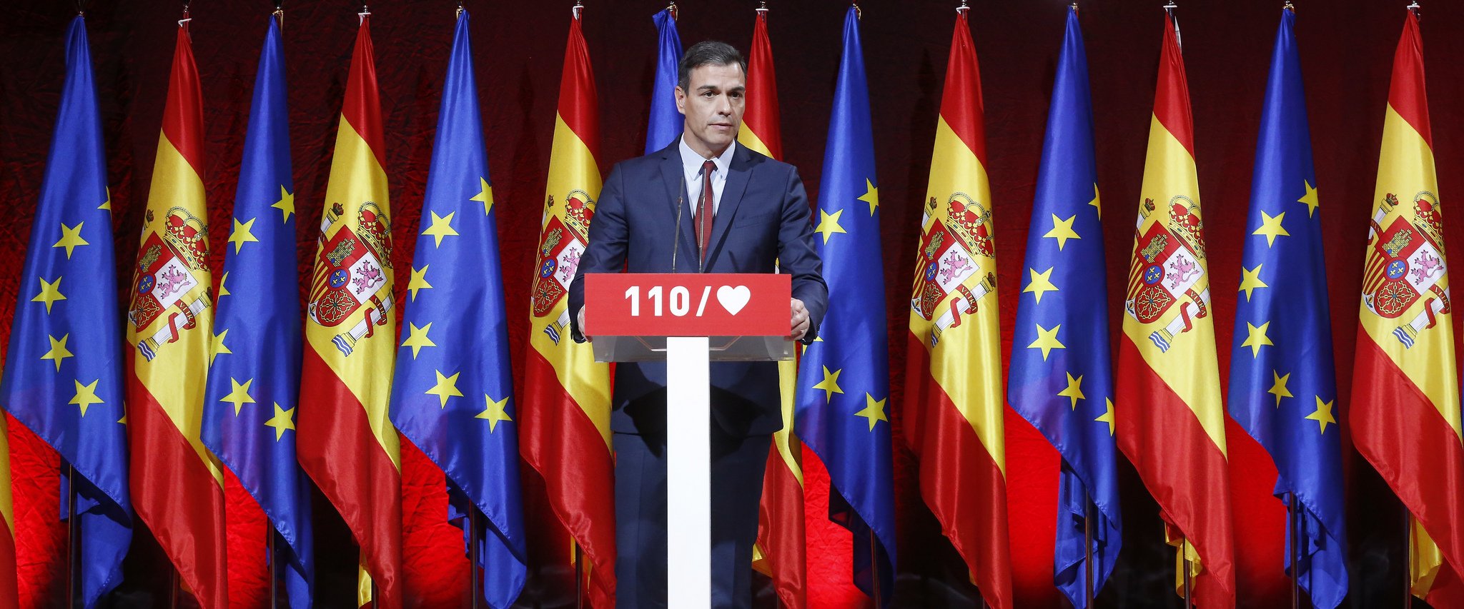 Pedro Sánchez ha presentado durante la mañana del miércoles las 110 medidas del programa electoral del PSOE. Tras un atril rojo con un corazón y delante de un fondo que alternaba banderas españolas y europeas, el presidente ha llamado a la “participación masiva en las urnas”; la alternativa a “una España enfrentada” que tendría lugar de perder el PSOE las elecciones del 28-A, según Sánchez. ¿Y en qué consiste su moderada y sensata propuesta?