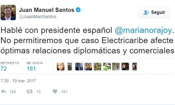 Electricaribe afecte óptimas relaciones diplomáticas y comerciales". Así ha contestado el presidente colombiano,