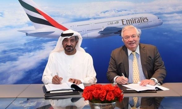 en la imagen durante la firma con el Ceo de Emirates, Saeed Al Maktoum).El pedido de Emirates, valorado en 16.000 millones de dólares, se concreta en