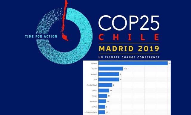 Endesa, Repsol, Naturgy y EDP fueron las empresas más contaminantes de 2018 en España, según datos del Observatorio de la Sostenibilidad. Algo que conviene recordar en estos días que tiene lugar la COP25 en Madrid, pues de este grupo sólo Endesa está entre sus patrocinadores y presume de ello en prensa, mostrando una generosidad que no tiene con sus empleados jubilados ni con los actuales.
