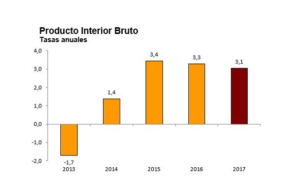 PIB español ha subido un 3,1% en 2017, lo que supone dos décimas menos que en 2016,