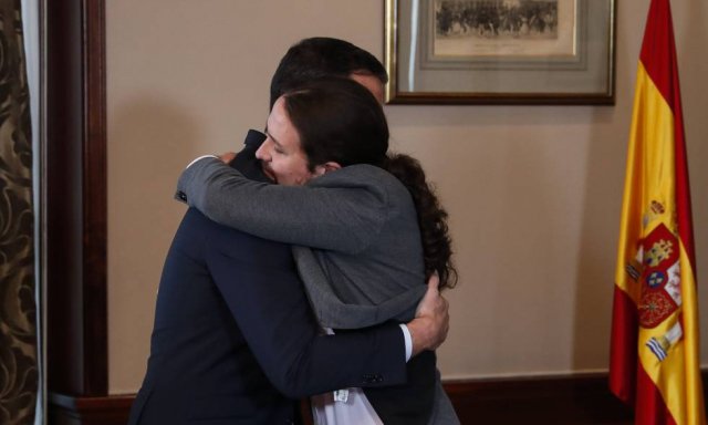 A mediodía del martes 12, se confirmaba el desastre con el preacuerdo entre PSOE y Podemos, rubricado con el abrazo más falso que he visto en política. Había llegado la conjunción de la Espala roja con la España rota: el frentepopulismo de los Picapiedra, de Pedro y de Pablo: socialistas más neocomunistas más separatistas. Los comunistas (leninistas 3.0, que diría Felipe González) volvían la gobierno de la mano de Sánchez, 86 años después.