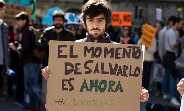 La inspiradora es un tal Greta Thunberg, que intervino durante la COP24 en Katowice: “Vosotros solo habláis de crecimiento económico verde infinito porque tenéis miedo de parecer demasiado impopulares. Solo habláis de moveros hacia adelante con las mismas malas ideas que nos han metido en este desastre. Incluso cuando lo único sensato es tirar del freno de emergencia”.